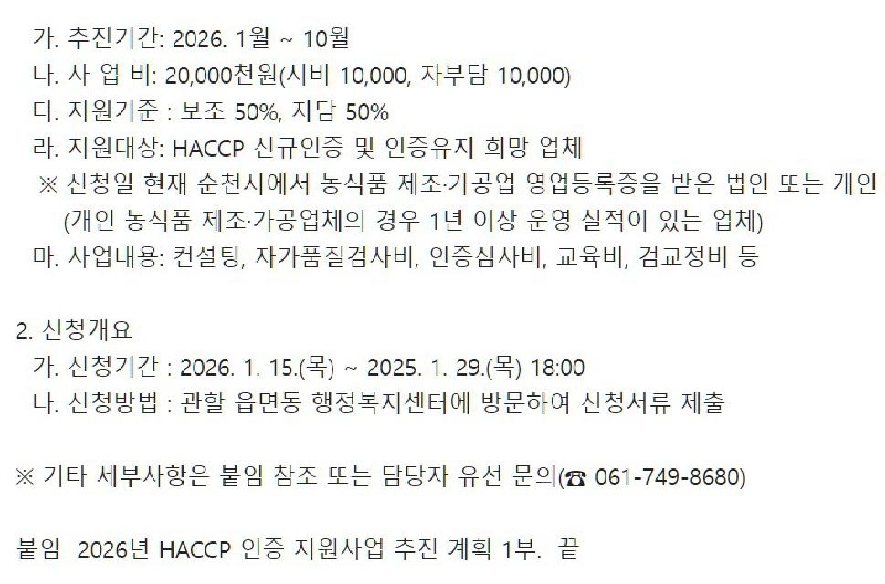 [~01.29.(목)]2026년 HACCP(해썹) 인증 지원사업 추진 알림