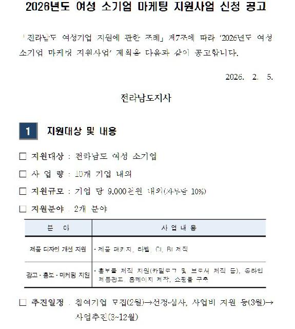 [~02.25.(수)] 2026년도 여성 소기업 마케팅 지원사업 신청 공고