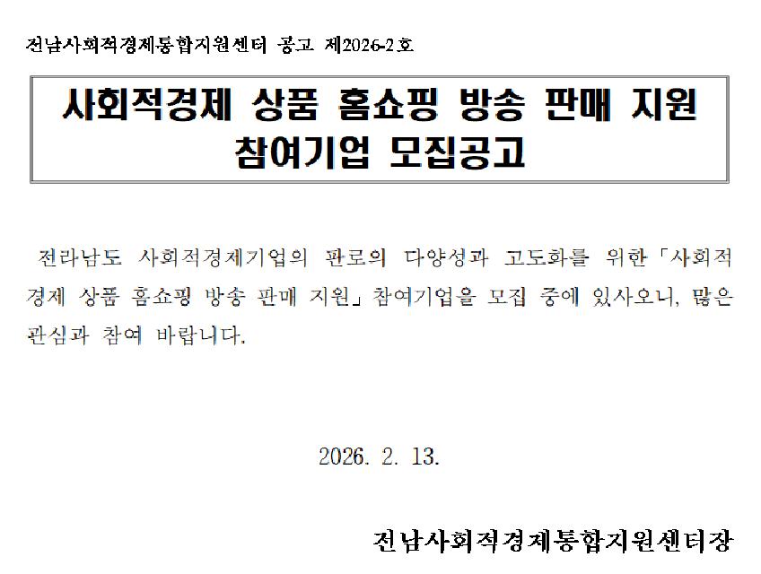 [~03.06.(금)]사회적경제 상품 홈쇼핑 방송 판매 지원 참여기업 모집공고