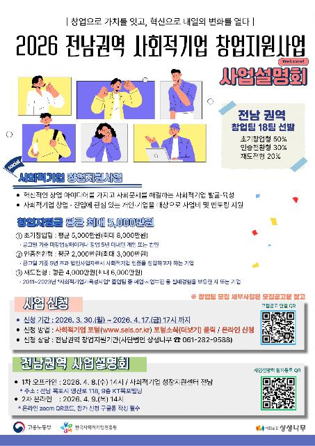 [~04.17.(금)] 2026년 전남권역 사회적기업 창업지원 사업 창업팀 모집 및 사업설명회
