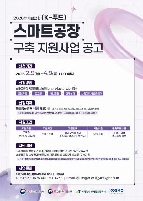 [~04.09.(목)] 2026년 부처협업형(K-푸드) 스마트공장 구축 지원사업 공모 안내