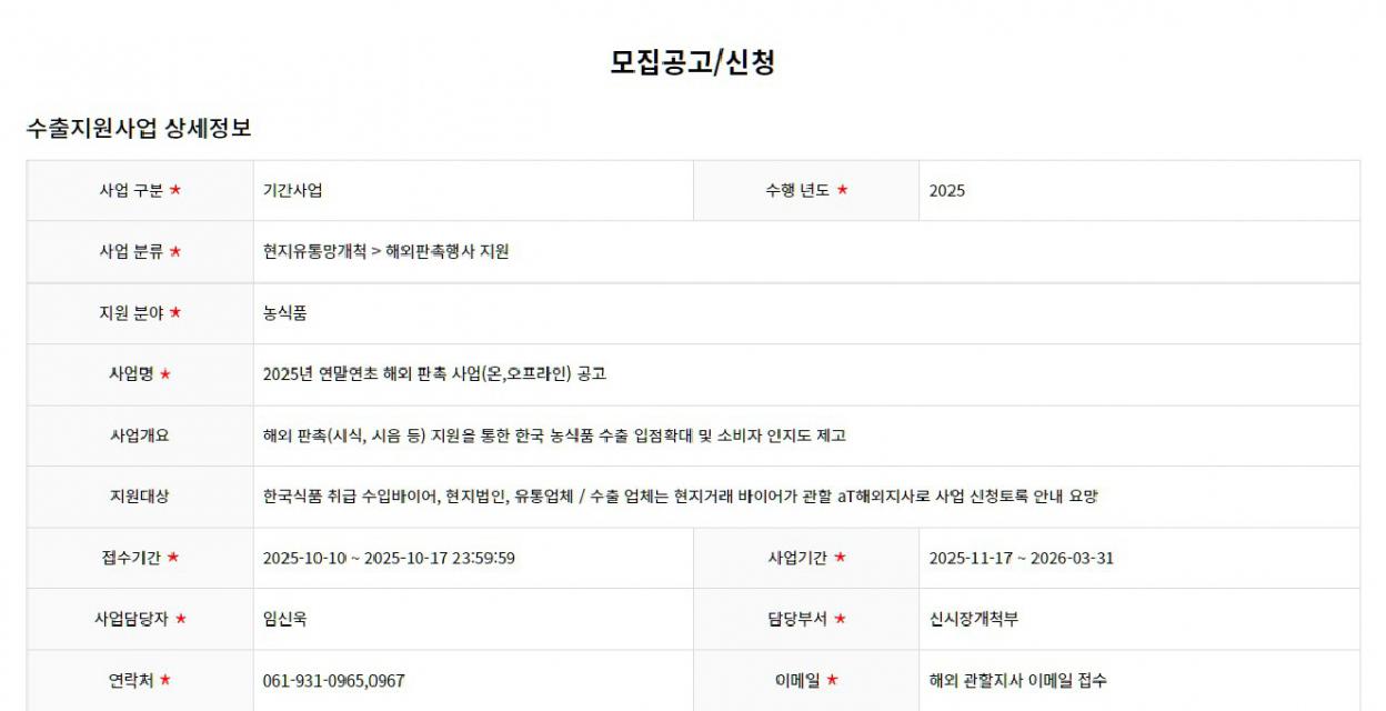 (~10.17.)2025년 연말연초 해외 판촉 사업(온,오프라인) 공고