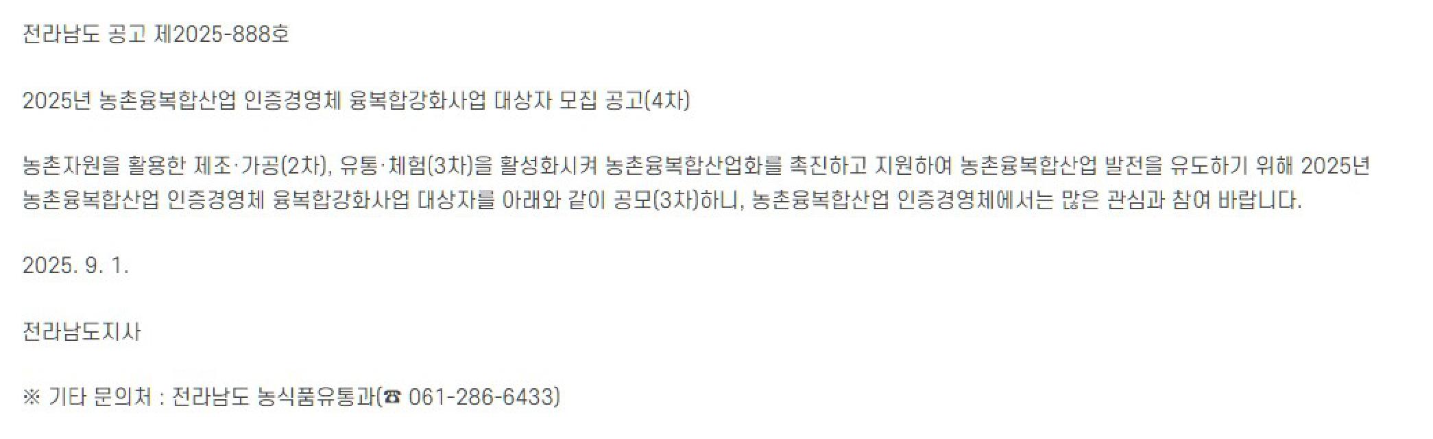 (~09.10.) 2025년 농촌 융복합산업 인증경영체 융복합강화사업 대상자 모집공고