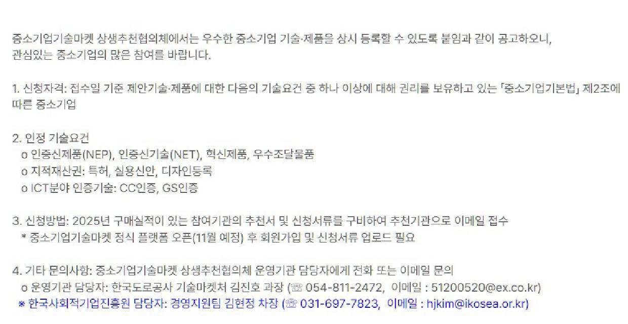(상시접수)중소기업기술마켓 상생추천협의체 상생기술·제품 등록 공고