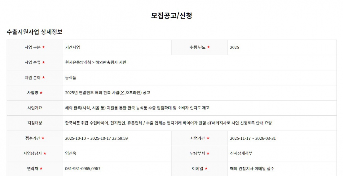 (~09.10.) 2025 국제 농업박람회 해외 바이어 초청 수출 상담회 참가기업 모집 공고