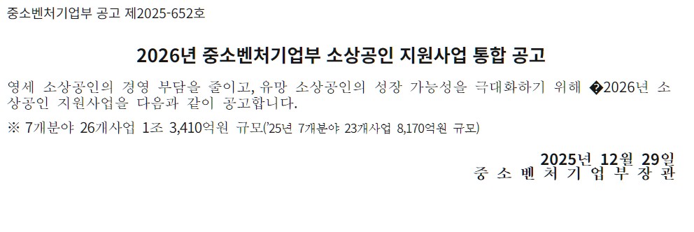 2026년도 전라남도 소상공인 육성자금지원계획 공고