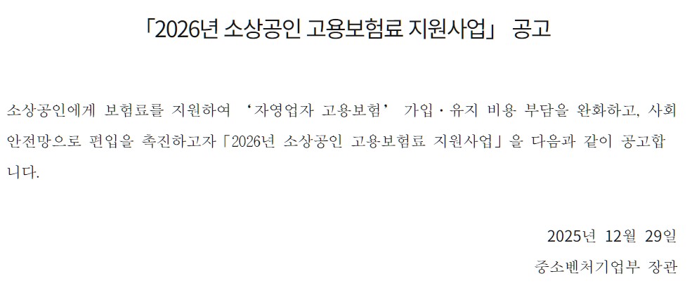 2026년 중소벤처기업부 소상공인 지원사업 통합 공고