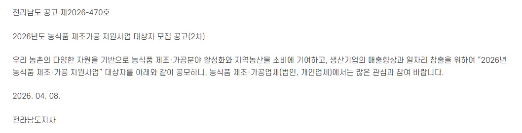 전라남도 농산물 유통판매망 네트워크 구축 지원사업 공고