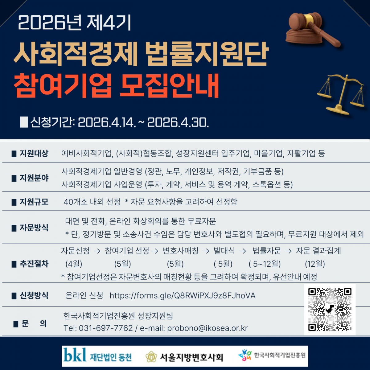 [~04.05.(일)] 사회적경제조직 엑셀러레이팅 무료법률지원 단체 모집
