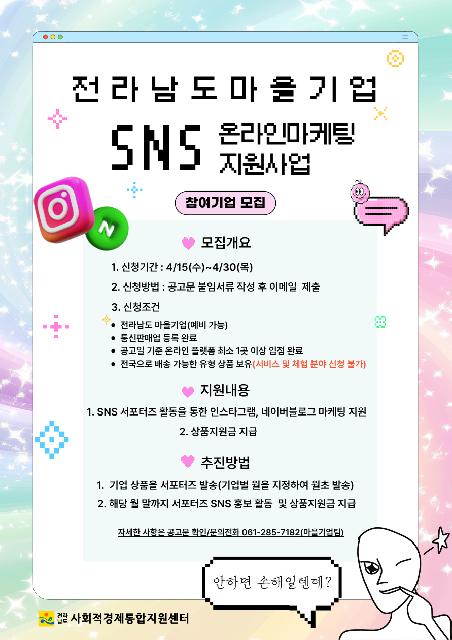 [~04.30.(목)] 2026년 전라남도 마을기업 SNS 온라인 마케팅 지원사업 참여기업 모집공고